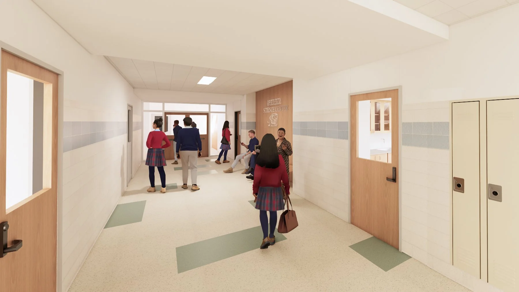 Project Type: Conversion of a 1950s high school wing into a modern science suite blending new laboratories with the building's mid-century masonry character